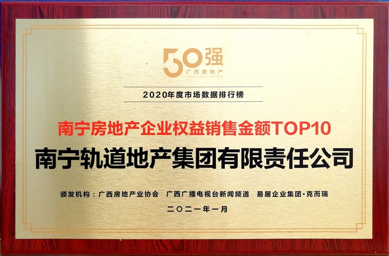 • 公司榮獲2020年度南寧房地產(chǎn)企業(yè)權(quán)益銷售金額TOP10稱號