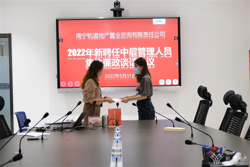 為進一步增強廉潔從業(yè)意識,筑牢拒腐防變思想防線。5月31日下午,軌道地產(chǎn)咨詢公司黨支部書記、董事長、總經(jīng)理(兼)劉燕同志組織軌道地產(chǎn)咨詢公司2022年新聘任的四名中層領(lǐng)導(dǎo)干部召開集體廉政談話會議,會議由軌道地產(chǎn)咨詢公司黨支部紀檢委員李佳潞同志主持。