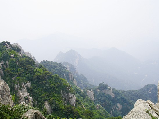 我們的行程很快,在下纜車后迅速到達南天門開始向玉皇頂進發(fā),然后終于來到了向往已久的泰山摩崖石刻處。作為泰山的標記之一,站在《紀泰山銘》的刻石下面,仰望這部唐玄宗的"封"山之作,頓時覺得自己十分渺小,泰山獨有的莊嚴神圣和巍峨磅礴撲面而來,讓我完全拜服于泰山的獨特魅力之中。隨后我們登上了泰山之巔--玉皇頂。在玉皇頂回身俯視天地,終于在課本之外親身體會感受到杜甫"會當凌絕頂,一覽眾山小"這句千古絕唱的韻妙之處,也真切的領會到"登泰山而小天下"的無與倫比的雄偉霸氣所在。