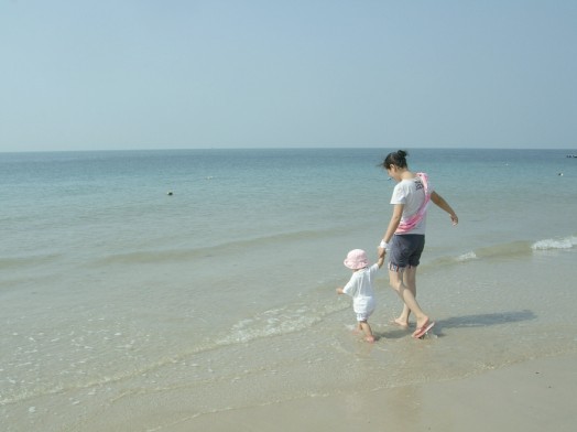 海灘上留下了無(wú)數(shù)指尖大小的小孔隙,出于好奇,我蹲下來(lái)靜靜地觀察,發(fā)現(xiàn)有小小的螃蟹從小孔隙里爬出來(lái),象我一樣好好沐浴燦爛陽(yáng)光、溫暖海風(fēng);有些頂著米粒大的沙團(tuán)推出小孔隙,原來(lái)是小螃蟹寶寶在造穴,多勤勞呀,從小就養(yǎng)成了愛(ài)勞動(dòng)的習(xí)慣;最好玩的是好不容易逮著一只螃蟹寶寶放在手心任其橫行霸道,直癢得我開(kāi)懷大笑……..